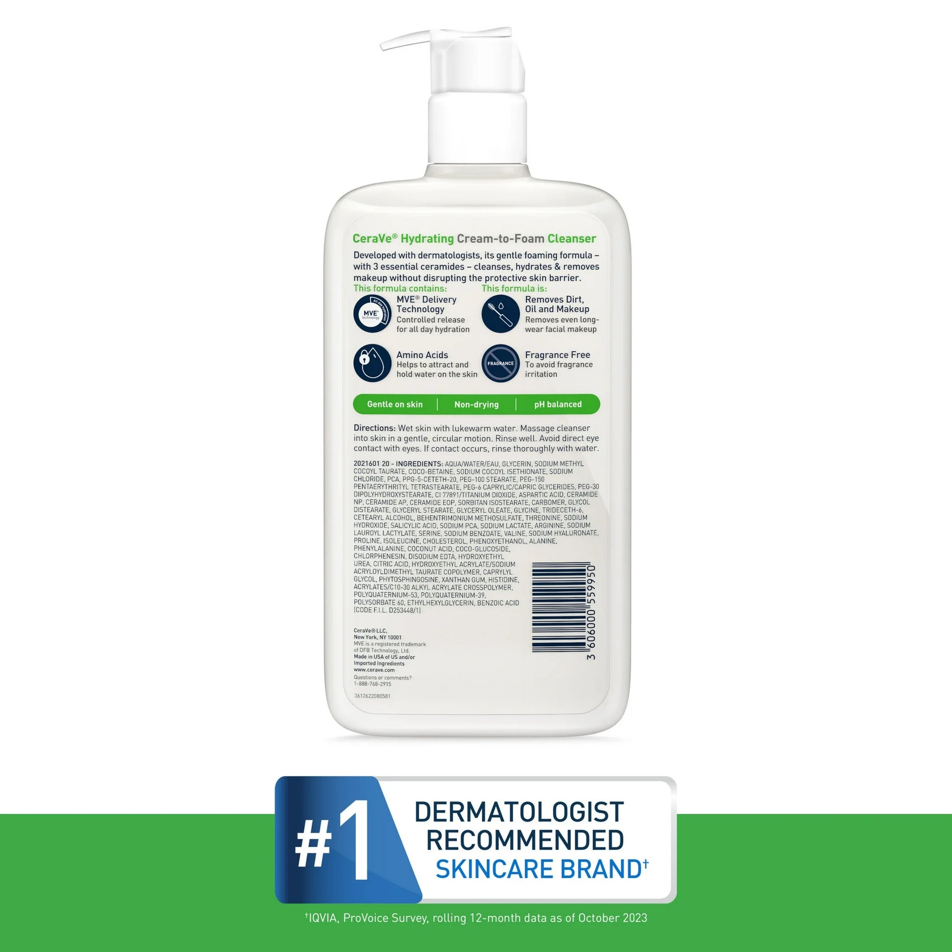 CeraVe Hydrating Cream-to-Foam Cleanser, 16 Oz