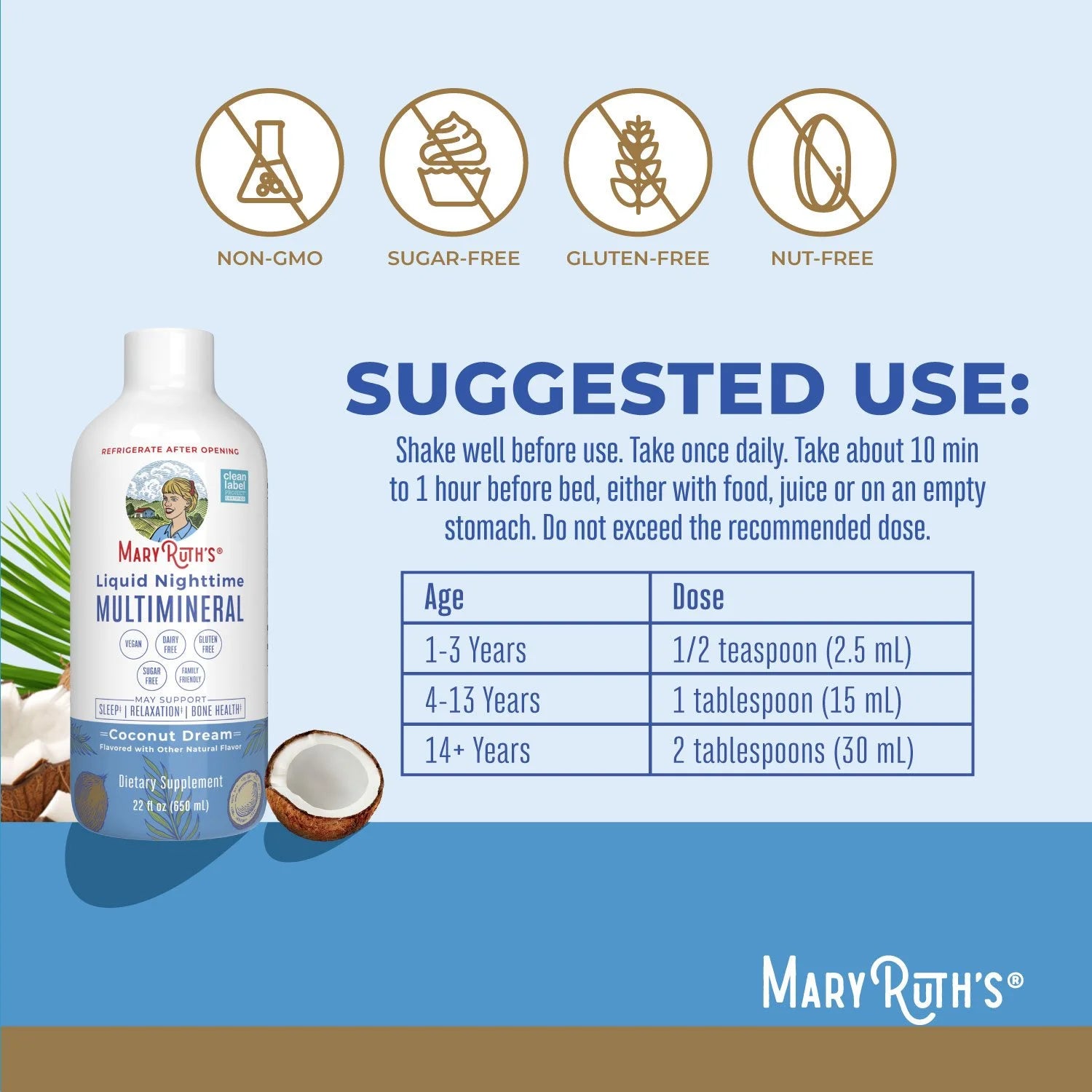 MaryRuth’s Nighttime Multimineral, Coconut, 22 fl. oz., 2 pack