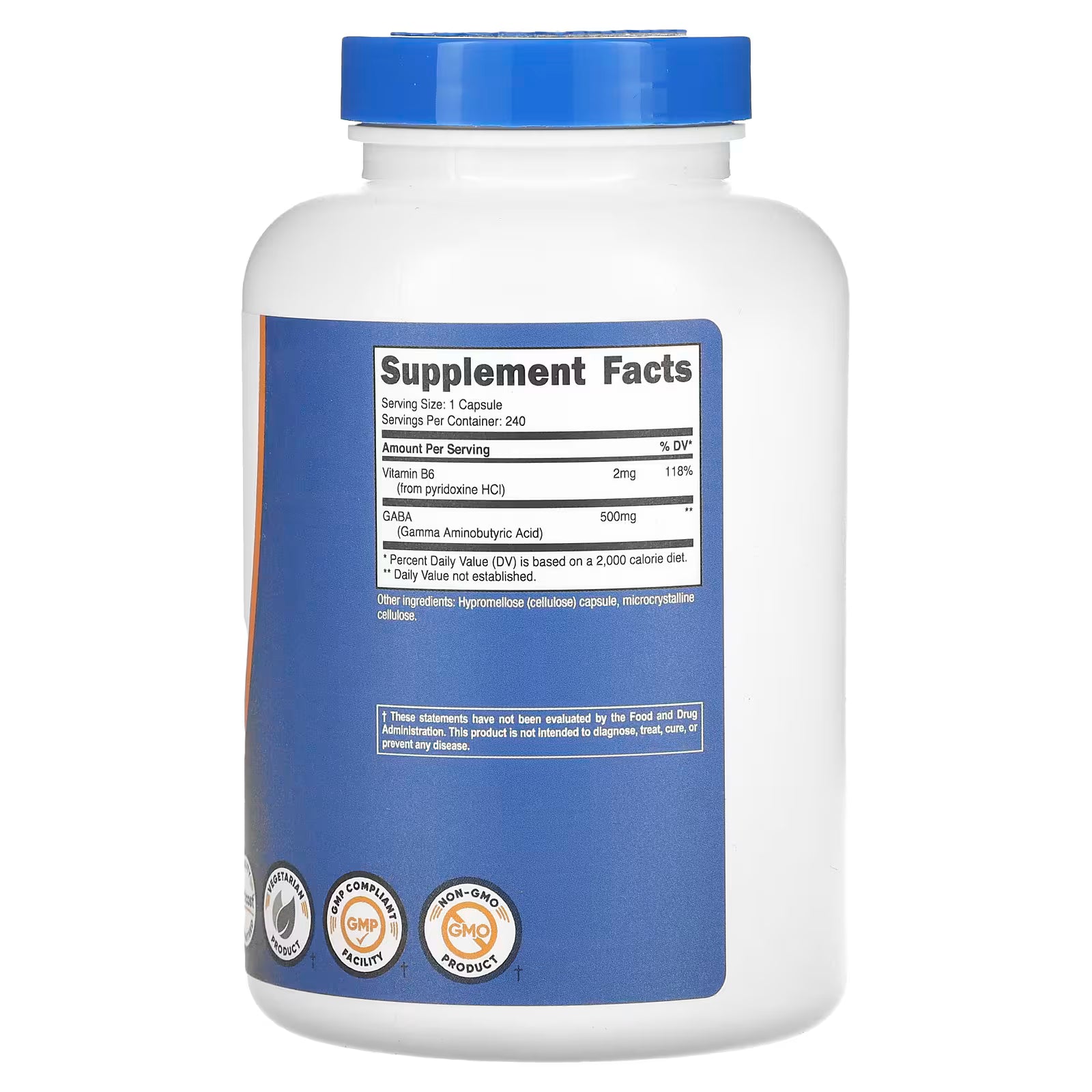 Nutricost, GABA With Vitamin B6, 500 mg, 240 Capsules