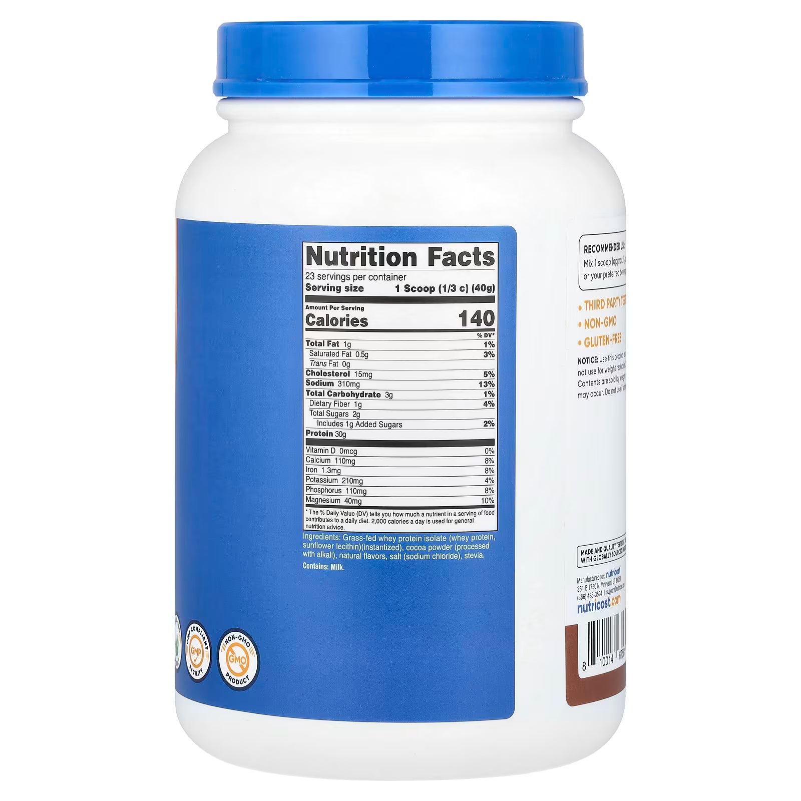 Nutricost, Grass-Fed Whey Protein Isolate, Milk Chocolate, 2 lb (907 g)