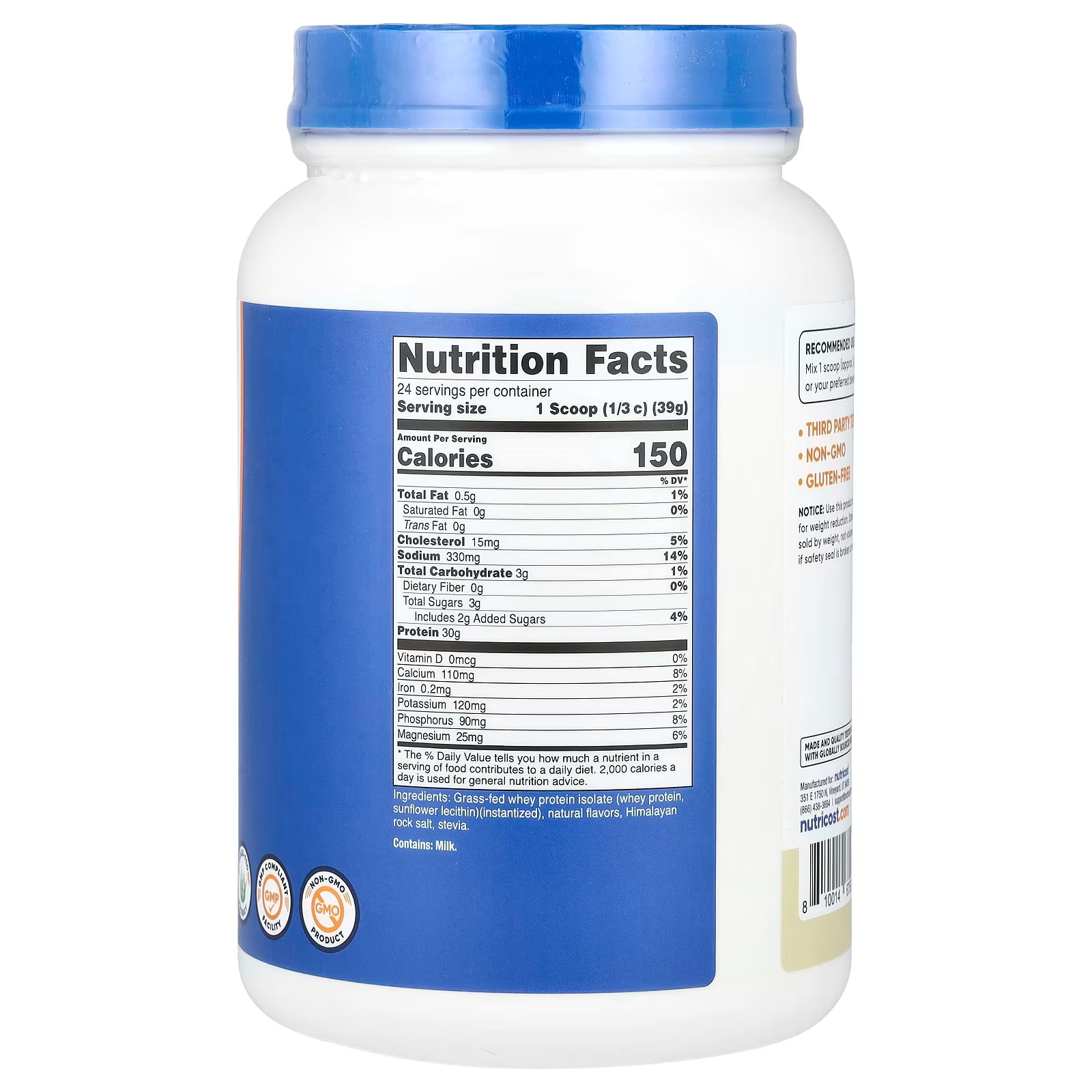 Nutricost, Grass-Fed Whey Protein Isolate, Vanilla, 2 lb (907 g)
