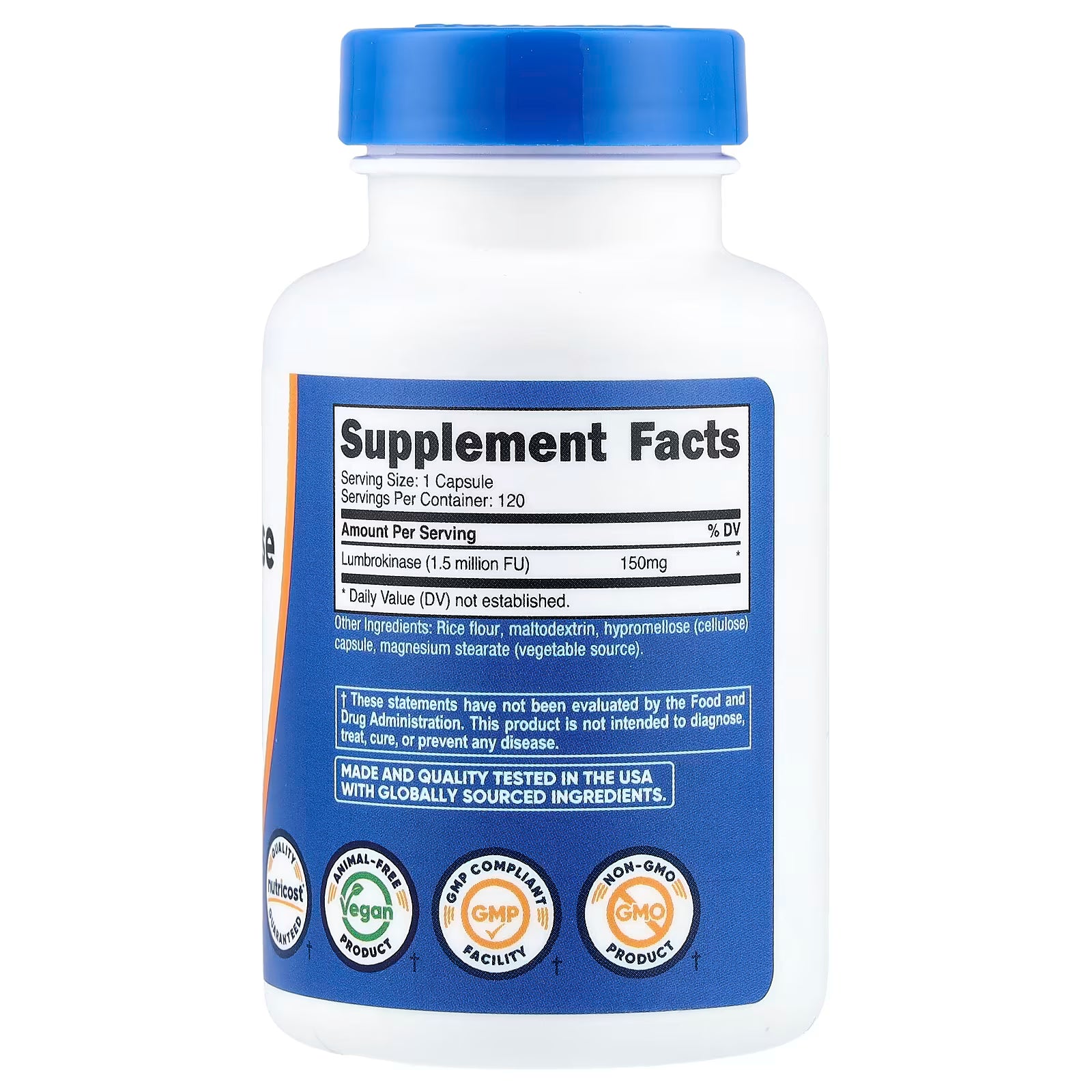 Nutricost, Lumbrokinase, 150 mg, 120 Capsules