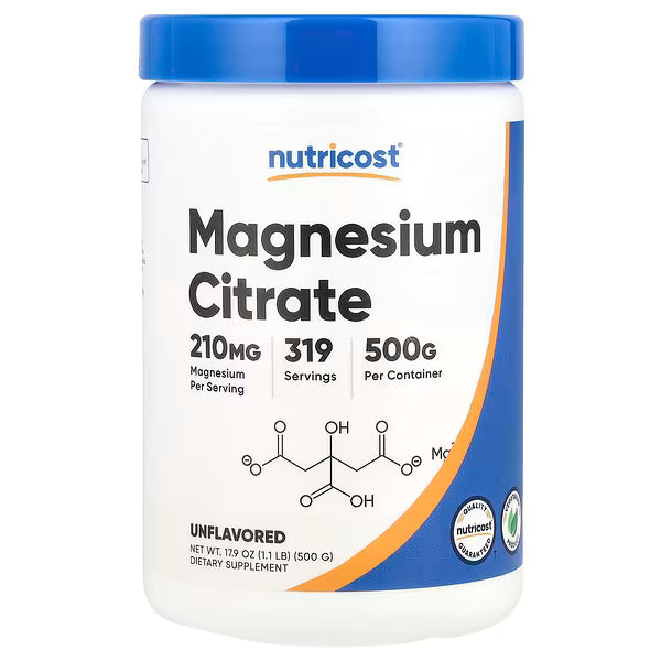 Nutricost, Magnesium Citrate, Unflavored , 210 mg, 17.9 oz (500 g)