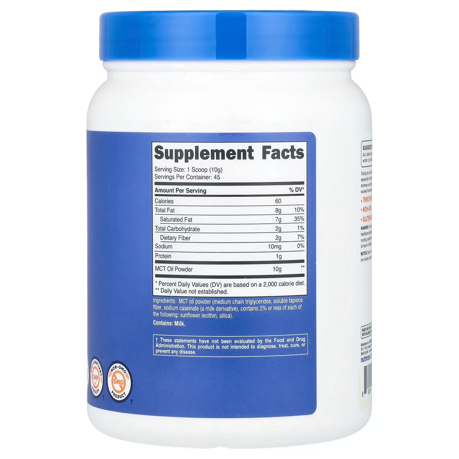 Nutricost, MCT Oil Powder, Unflavored, 16.2 oz (454 g)