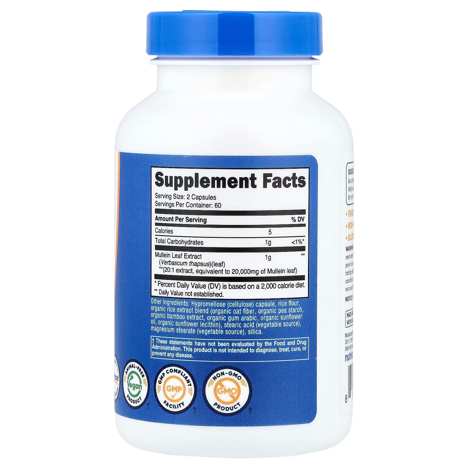 Nutricost, Mullein Leaf, 120 Capsules (500 mg per Capsule)