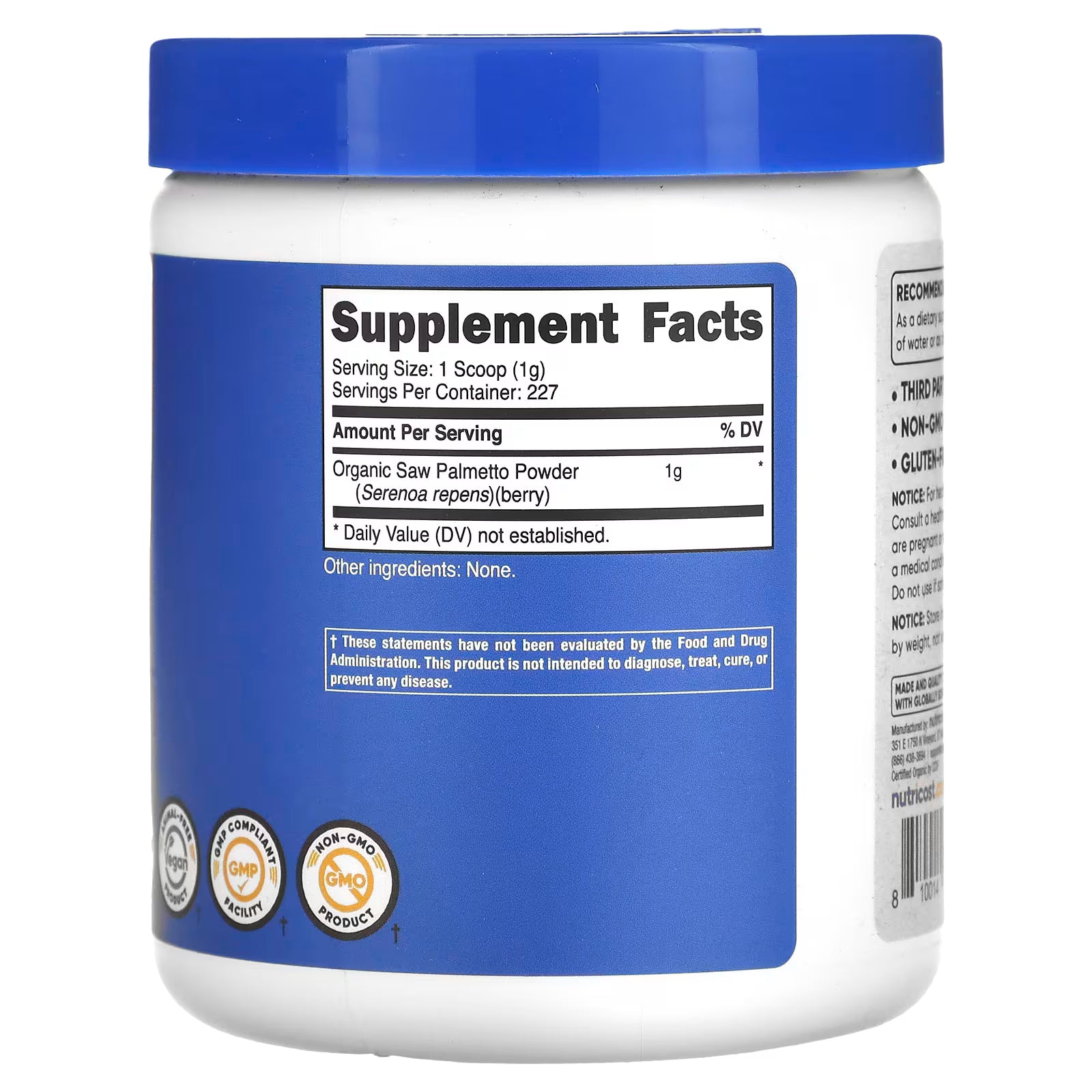 Nutricost, Organic Saw Palmetto, Unflavored, 8 oz (227 g)